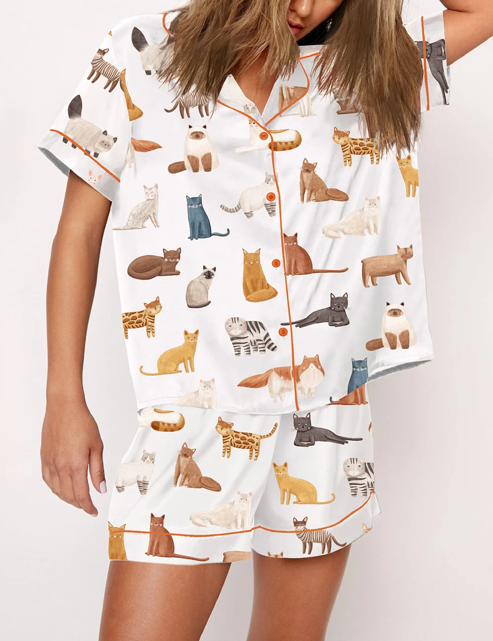 Women’s Cat Breeds Short Sleeve Satin Pajama Set