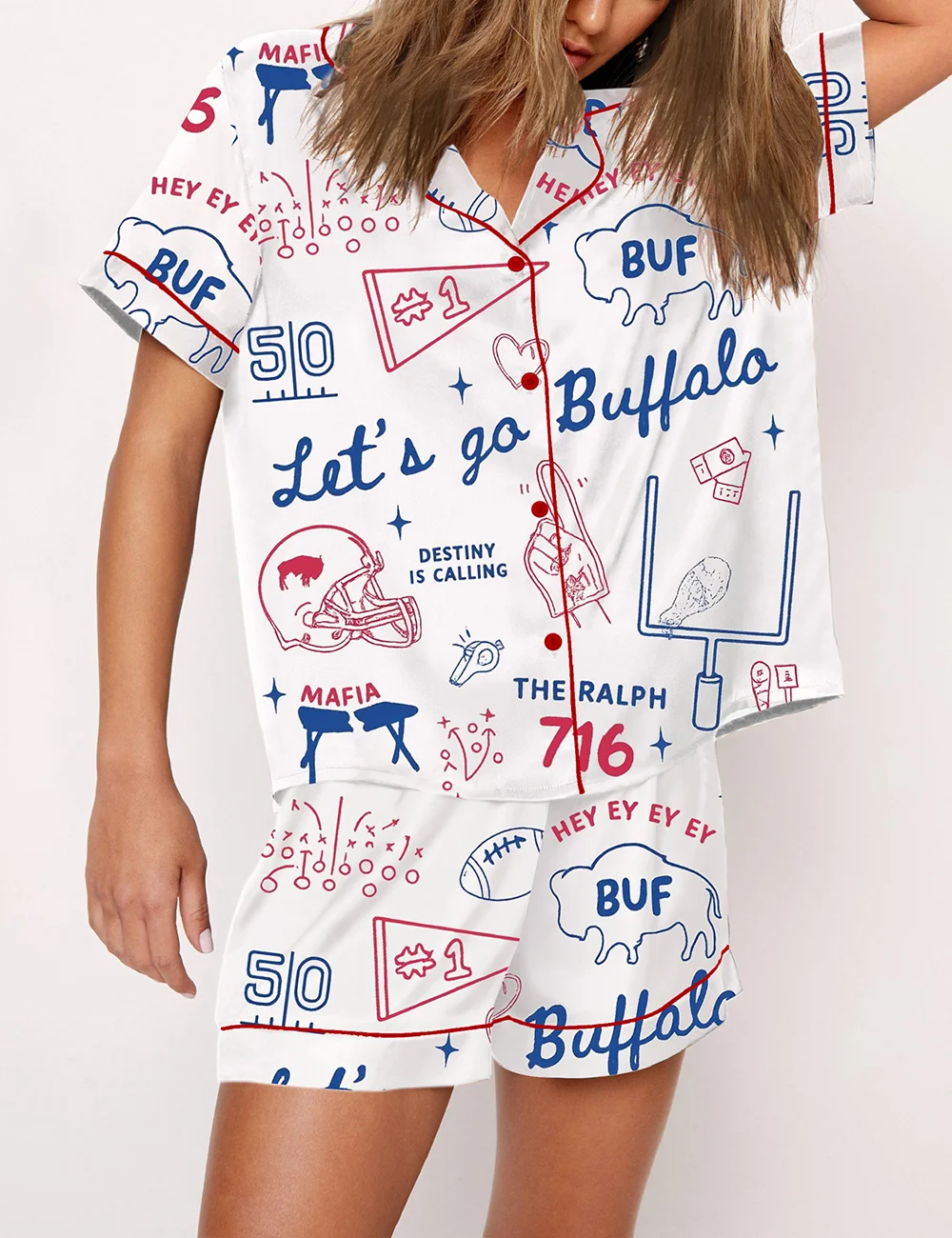 Women’s Buffalo Football Doodles Short Sleeve Satin Pajama Set