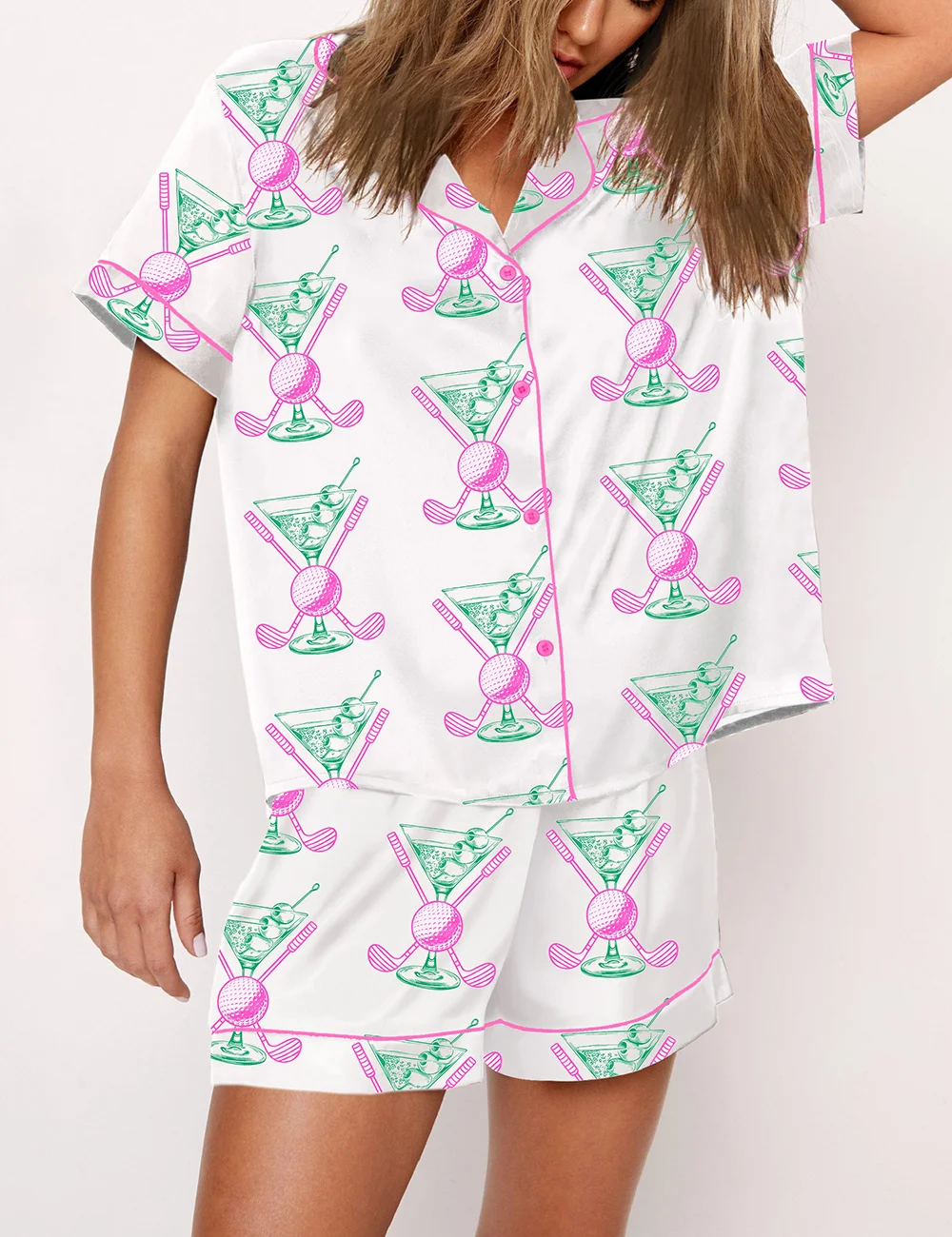 Women’s Golf Cocktail Club Summer Design Short Sleeve Satin Pajama Set