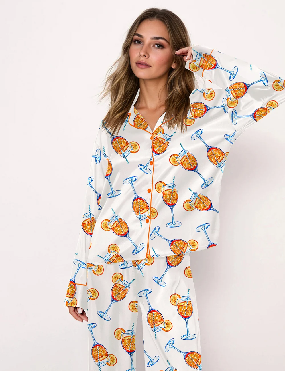 Women's Aperol Spritz Trio Watercolor Long Sleeve Pajama Set