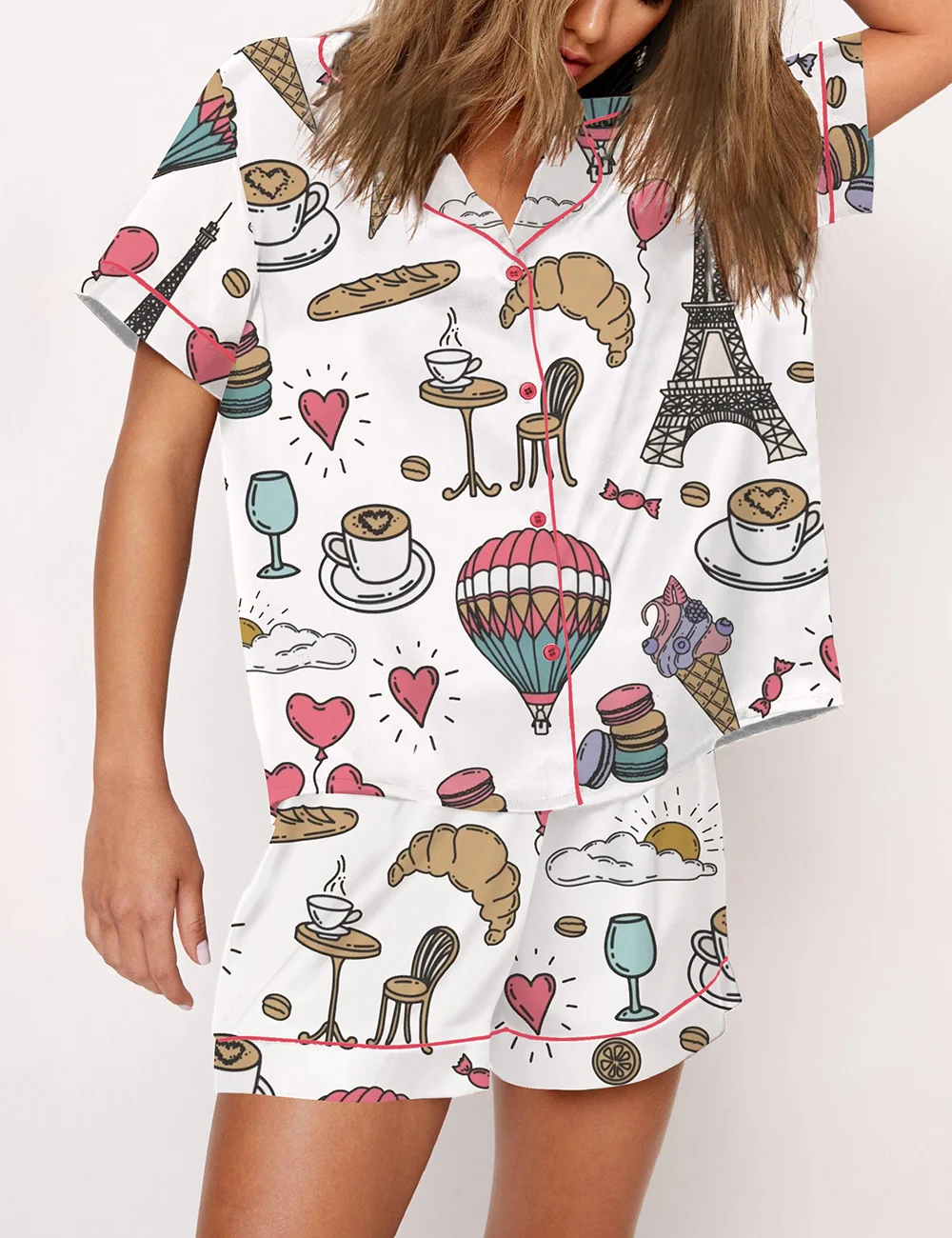 Women's Chic Paris Vintage Style Paris France Travel Print Pajama Set