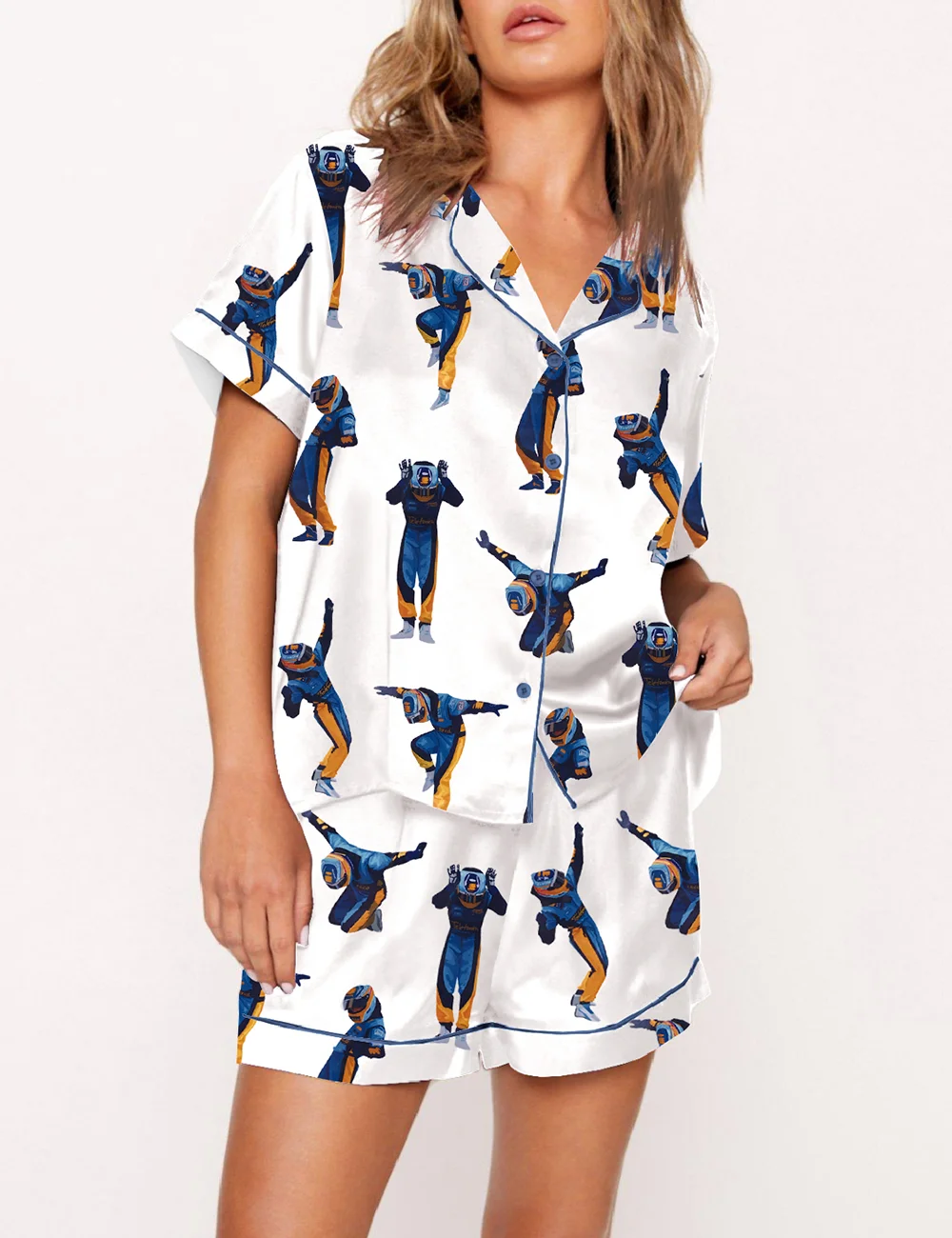 Women's Fernando Alonso Celebration Pose Formula 1 Fans Silky Satin Pajama Set