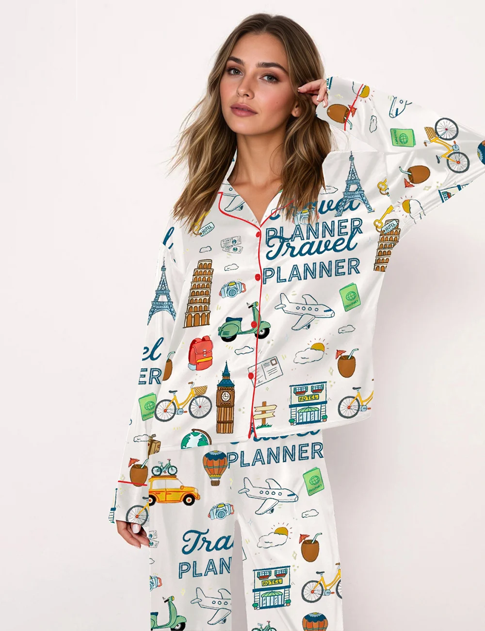 Women's Travel Planner Long Sleeve Pajama Set
